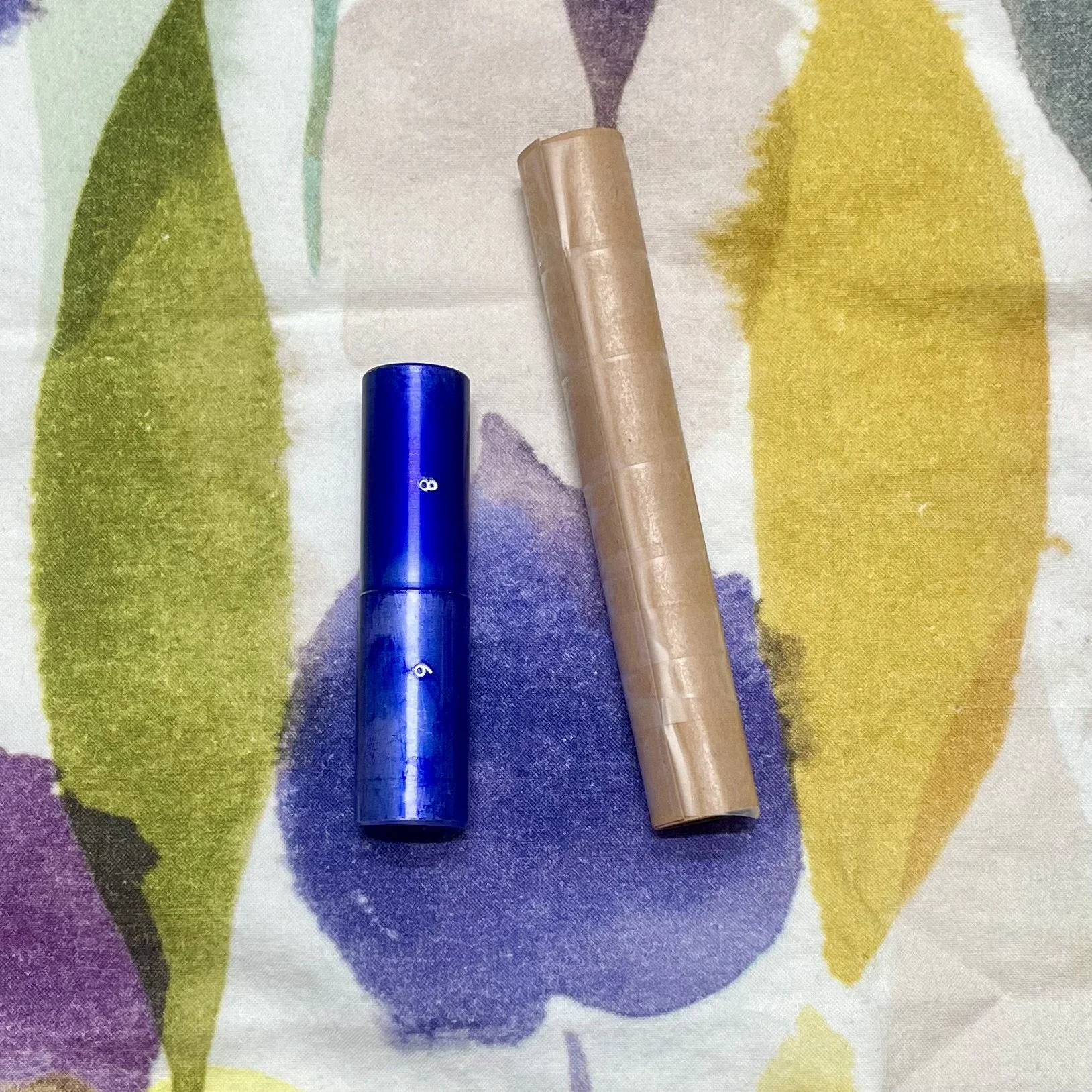 Metal ring mandrel (left) vs. homemade cardstock mandrel (right)